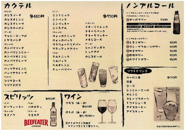 ドリンク」Bar alpha バーアルファ のメニューバ。