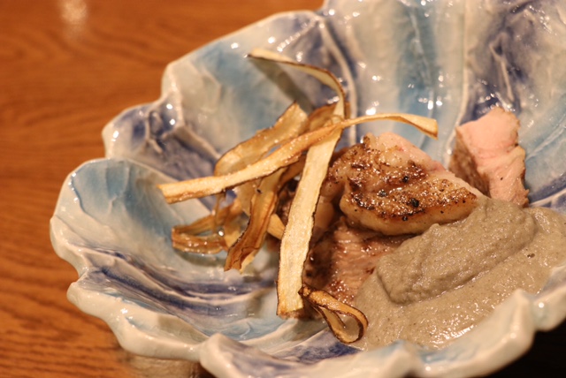 本日のランチより「仏産フレッシュフォアグラ ポワレし新ごぼうのクーリを添えトリュフソースにて」 - フランス料理店 シェ・ヒグチ - 福岡市南区長丘の フレンチレストラン。