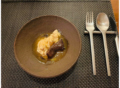 SOMBREUILJoue de bœuf braisé rôti, sauce coulis d'echalottes 国産牛頬肉のブレゼロティエシャロットのクーリSOMBREUILViandesソンブルイユ東京グルメグランメゾンガストロノミー東京フレンチ東京レストランフレンチフランス料理飯田橋神楽坂。