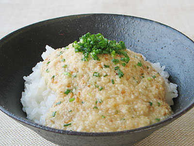 じゃこおにぎりと鶏ひき肉のみそ煮プレート。