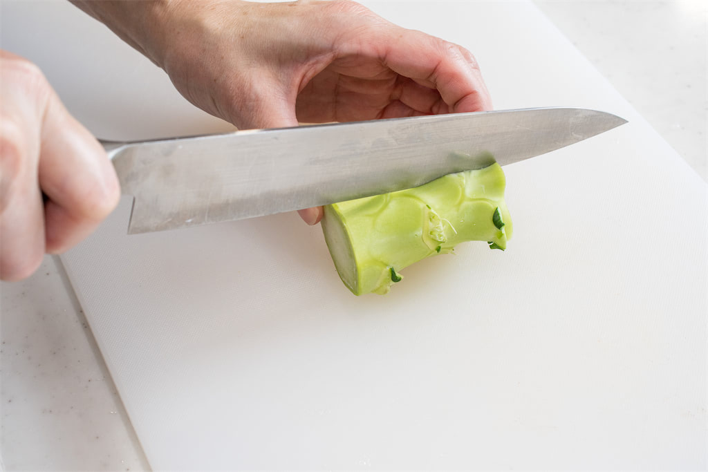 ブロッコリーの茎の皮を厚めに切る下ごしらえのきほん 野菜オレンジページnet。