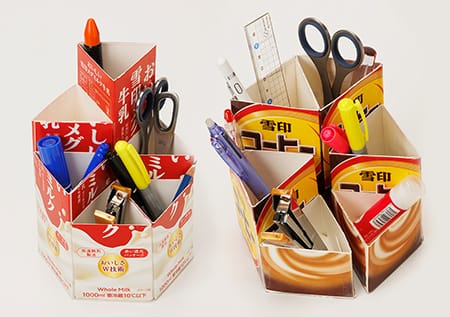 牛乳パックで簡単手作りペン立ての作り方と楽しみ方。