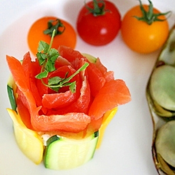 おもてなしにも♪スモークサーモンフラワーの前菜。