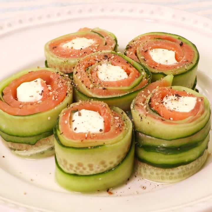 きゅうりとスモークサーモンの一口オードブル サラダカフェサラダのレシピがいっぱい。