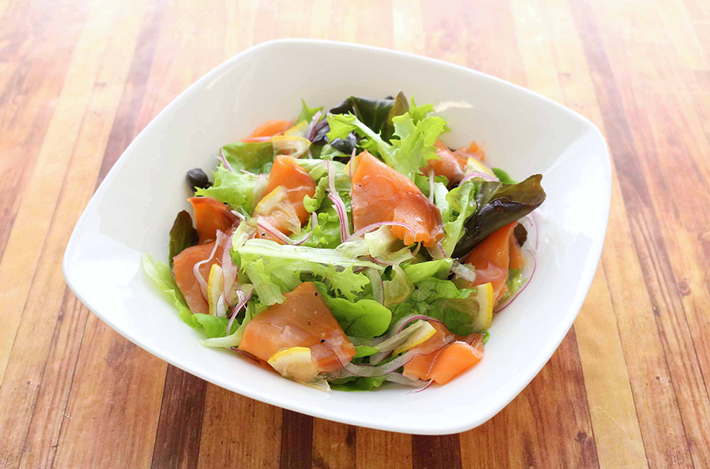 スモークサーモンの彩りサラダ内堀醸造株式会社。