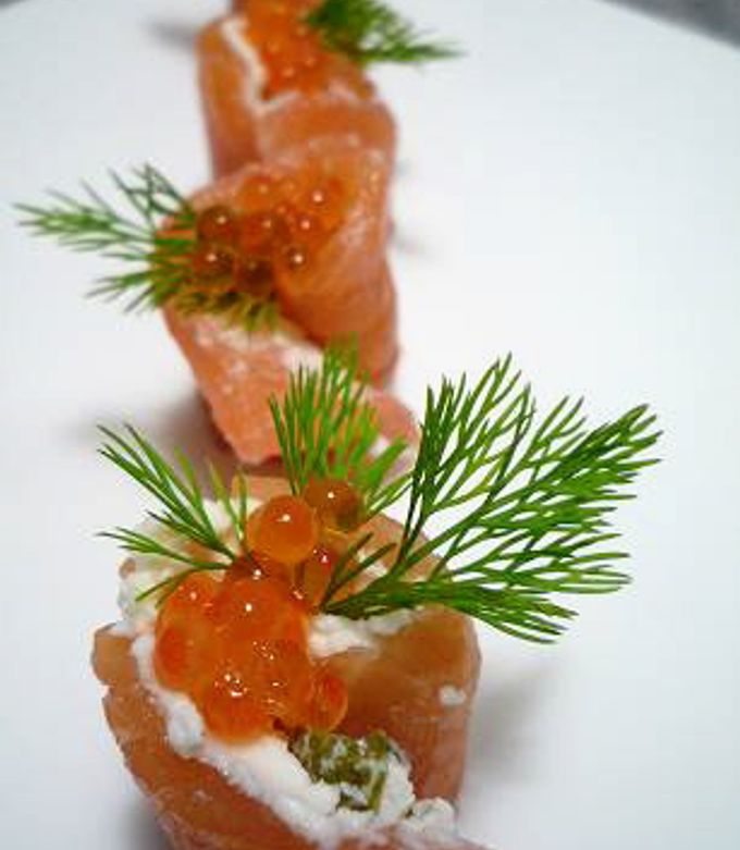 スモークサーモン 前菜 盛り付け (470 無料写真)
