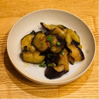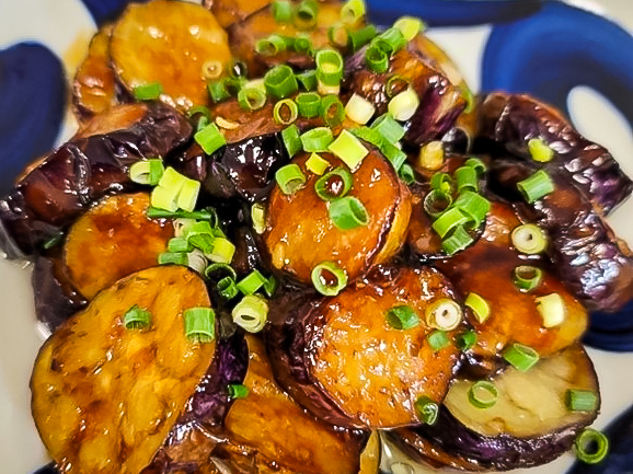 とろとろ焼なす甘酢がらめ。