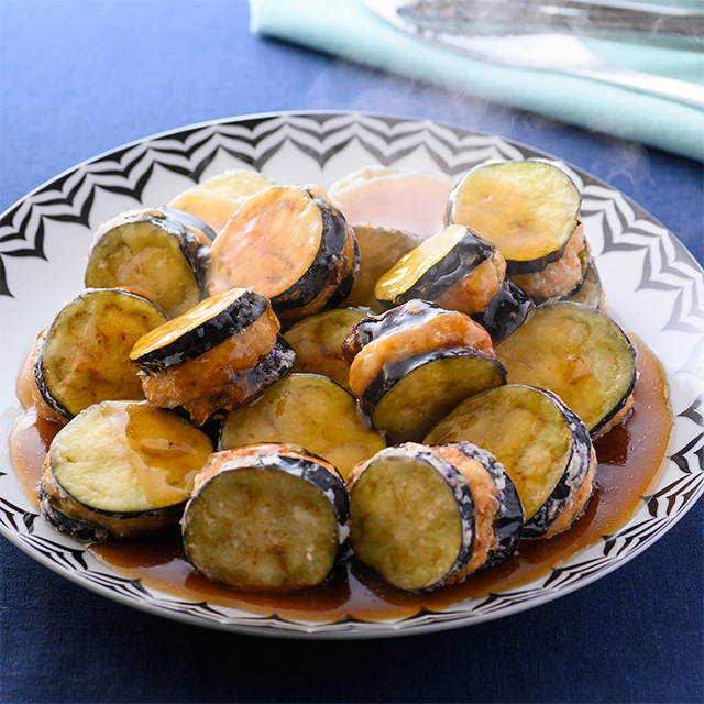 なすのはさみ揚げ 甘酢だれキユーピー3分クッキングCBCテレビ。