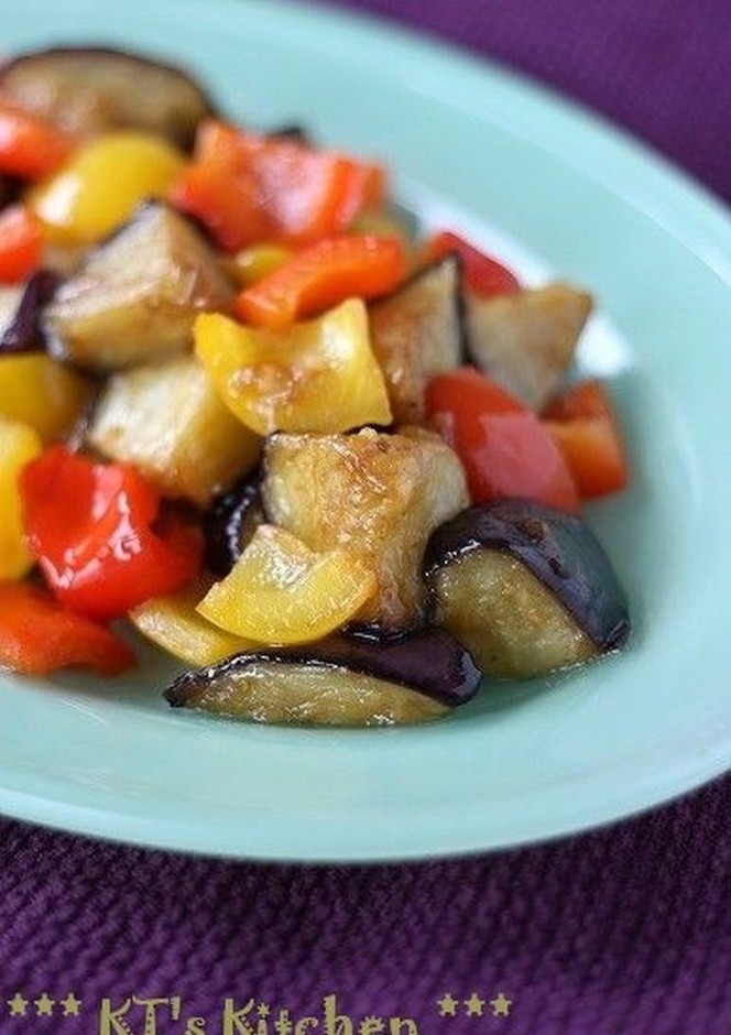 とろけるナスとパプリカの甘酢炒め。