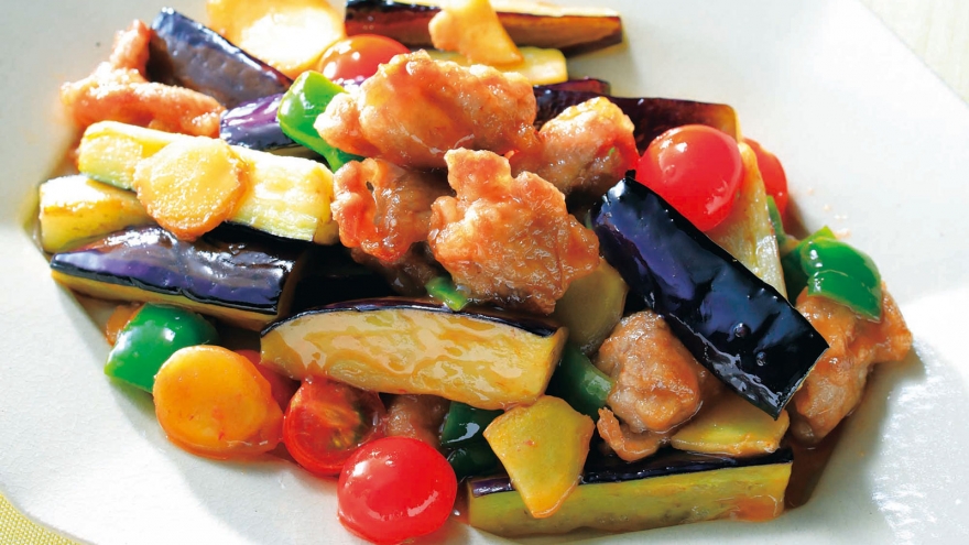鶏肉となすの甘酢炒め。