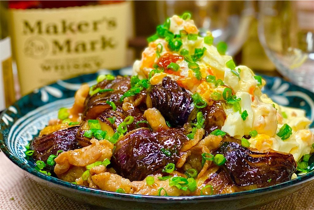 レシピ 茄子と豚バラの甘酢炒め~簡単タルタルソースで~ - しにゃごはん blog。