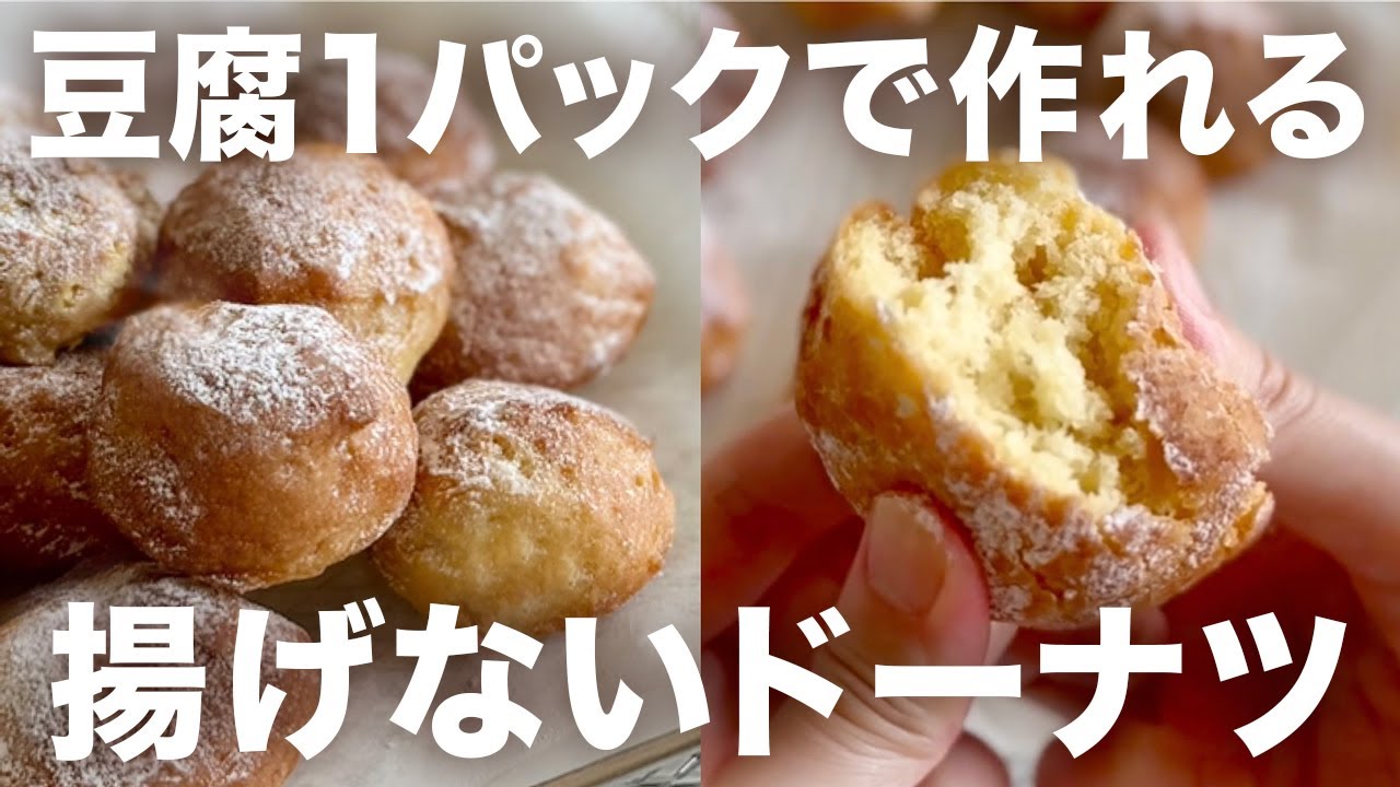 材料4つ 卵や牛乳なしで作る!カリカリもちっ♪に手が止まらない!米粉の豆腐ドーナツ - YouTube。