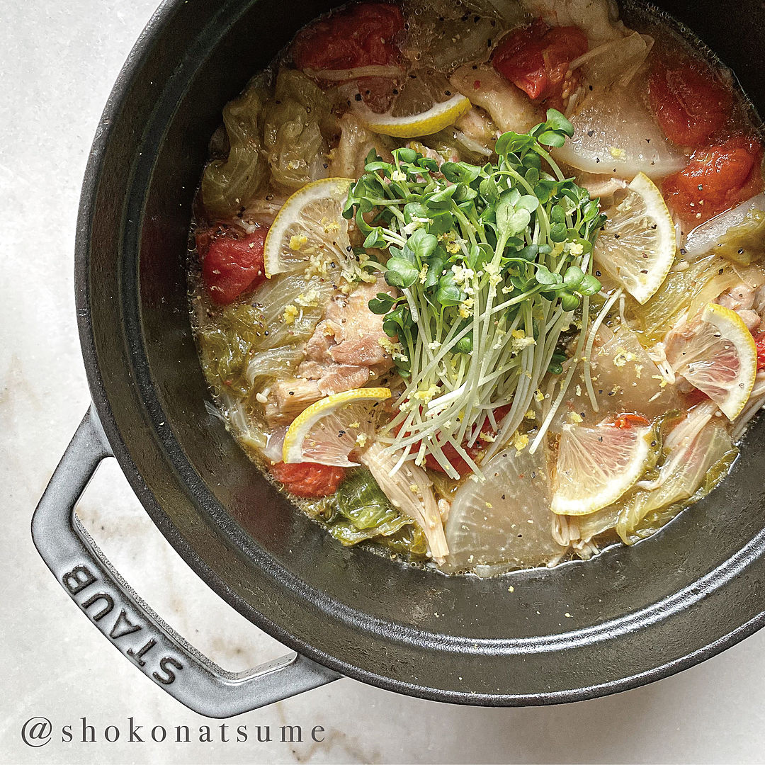 STAUBでつくる鶏肉とレタスのレモン鍋。