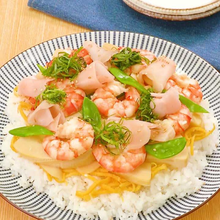 たけのこと海老のちらし寿司 旬を味わう!ごちそう春ごはんレシピツナギのお米マガジンお米マイスター・米食味鑑定士が美味しいお米の情報をお届けするお米マガジン。
