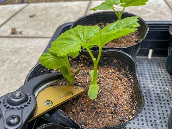 わが家のゴーヤづくり-前年に自家採種した種をぽっと蒔いて育苗してから露地の畝に定植しています。