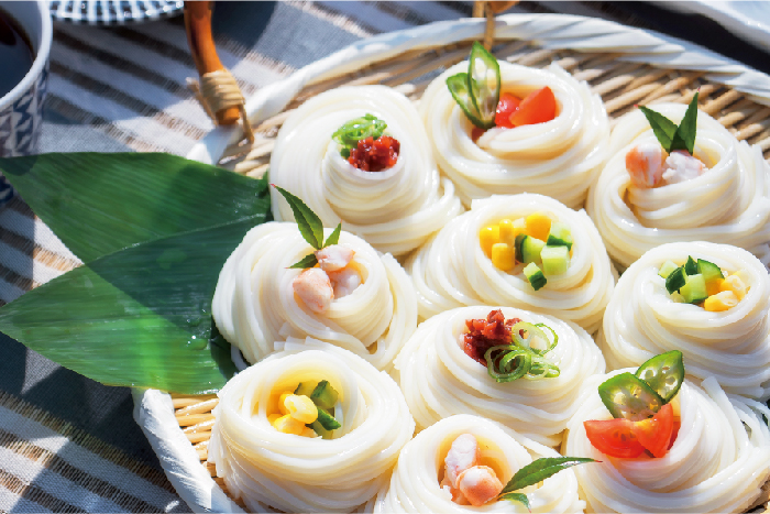 そうめんには天ぷらがおすすめ!「そうめんの里」で流しそうめん体験も。