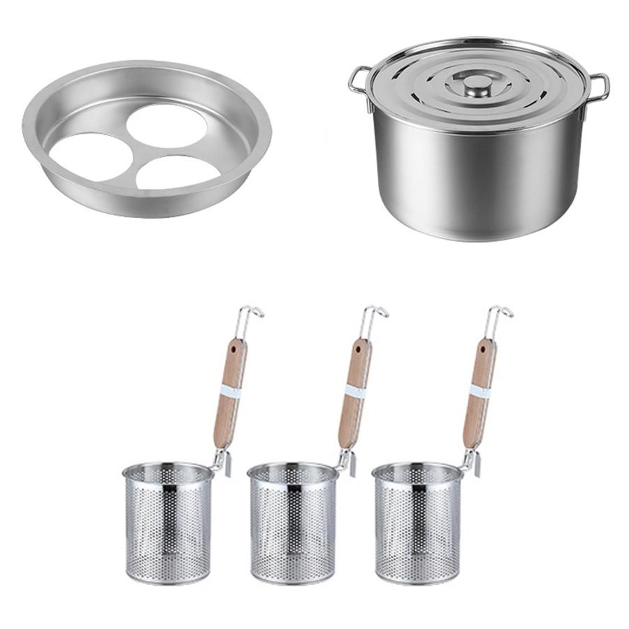 AmazonGriMei おでん鍋 パスタ鍋 業務用 そば・うどん用具 ステンレス製 そばゆで釜 ゆで釜 麺料理鍋セット 3穴 4穴 5穴寸胴鍋 ステンレスザル付 ストック鍋 両手鍋 シチューポット カレー鍋 フライパン 調理器具 てぼこし器 煮込み料理 IH調理器やガスコンロに対応。