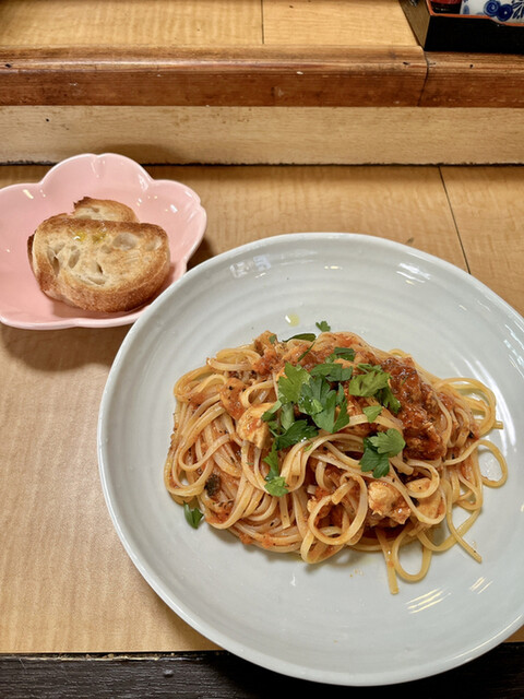 盛岡のおでん「根菜屋」・いわての食と春夏秋冬: ホヤの切り込みパスタ。