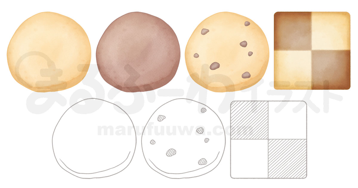 無料フリー素材 背景透過 水彩風&線画 クッキーのイラストかわいい無料素材♪まるふーわイラスト。