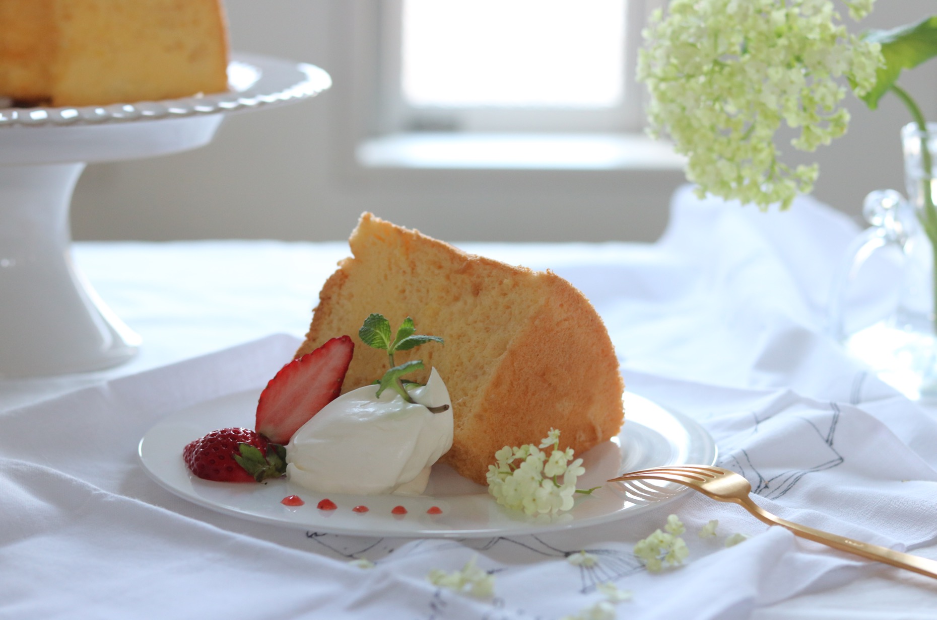ふわふわ を ぷるぷる と一緒に シンプルなシフォンケーキは皿盛りアレンジも自由 ご自宅や外出先でそのまま食べても カフェ風にゆったり独自の盛り付けをして楽しむのも楽しみ方は発想の数だけ低脂質重くない洋菓子さりげない贅沢シンプルケーキ シフォンケーキ。