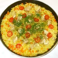 フライパンで簡単パエリア〜カレー粉とコンソメで。