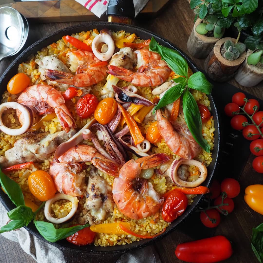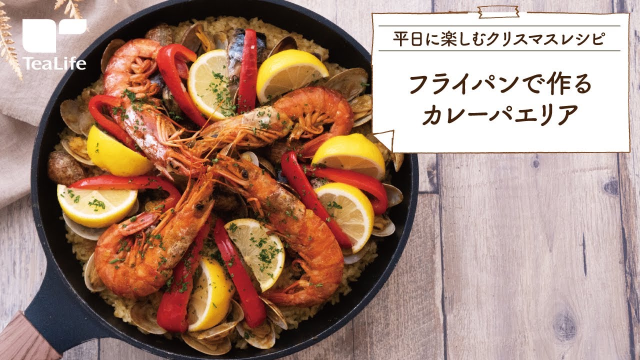 フライパンで簡単に 「カレーパエリア」を作ってみました。クリスマスや年末年始のごはんにおすすめの1品です。