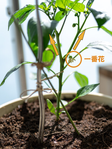 プランターでピーマンを育てています。花が咲いたら三本仕立てにしたいのですが、- Yahoo!知恵袋。