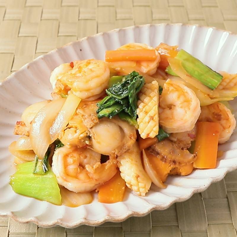 作り置き♪♪いか.えび.ホタテのシーフードカレ。