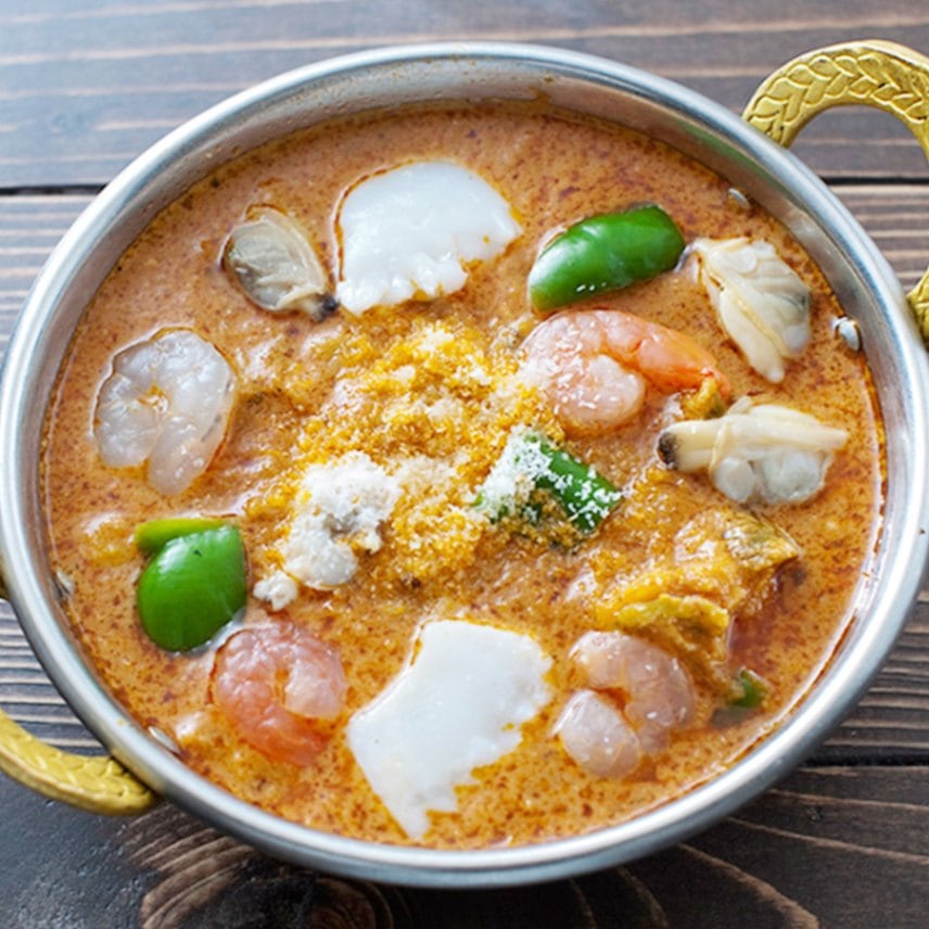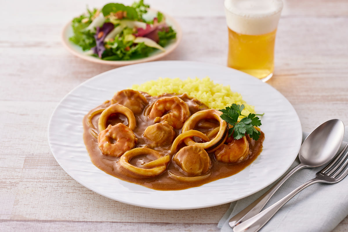 魚介のうまみたっぷり!白ワイン香るシーフードカレ。