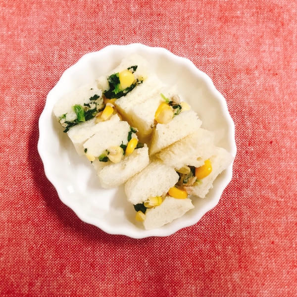 離乳食完了期 小松菜とツナマヨコーンサンドイッチ。