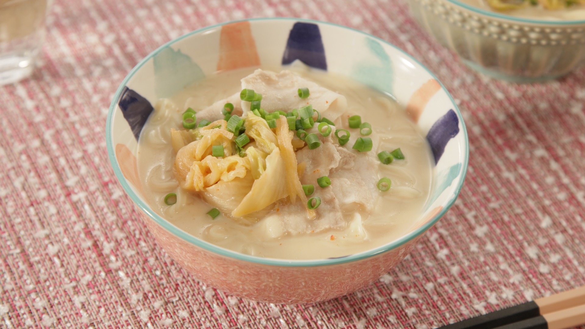 第590回らくらくクッキング チゲうどんスープでブデチゲラーメン鍋宮島醤油宮島醤油。