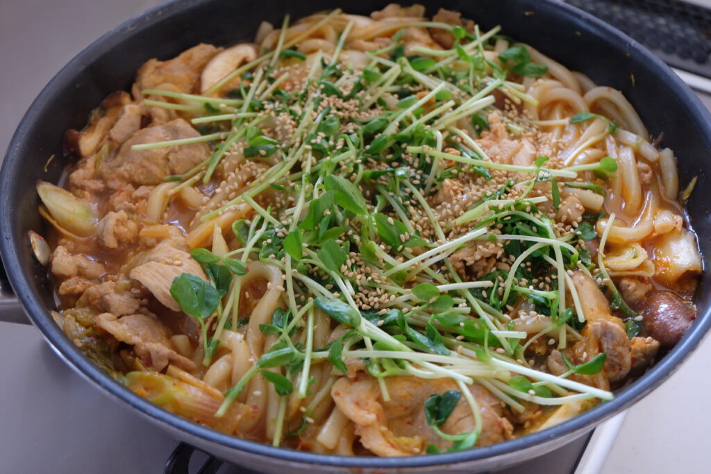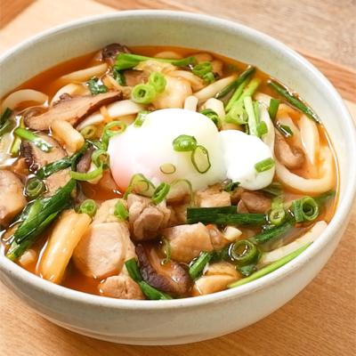 簡単に作れるピリ辛チゲうどんのレシピ。