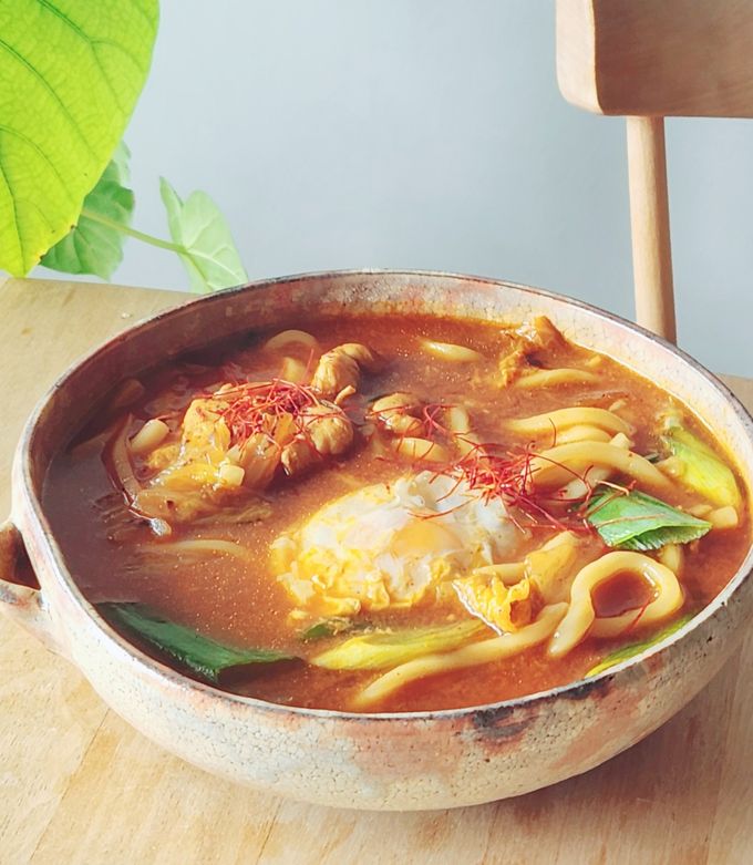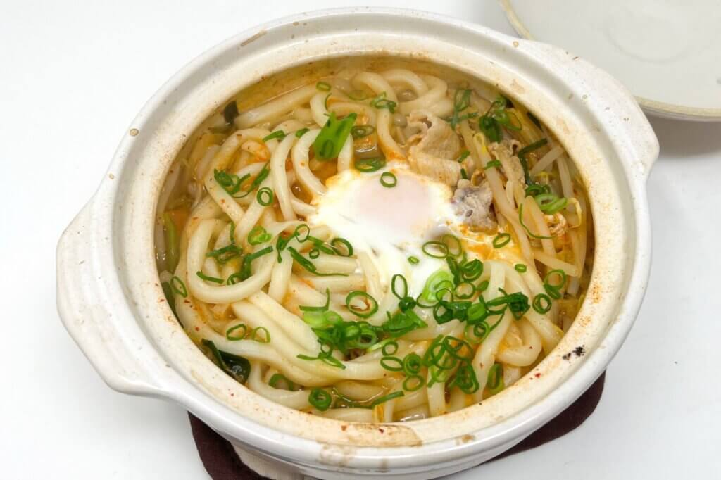 旨味がたっぷり!ピリ辛チゲうどんのレシピ。
