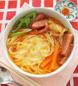 カネス製麺レシピピリ辛!チゲ風うどん。
