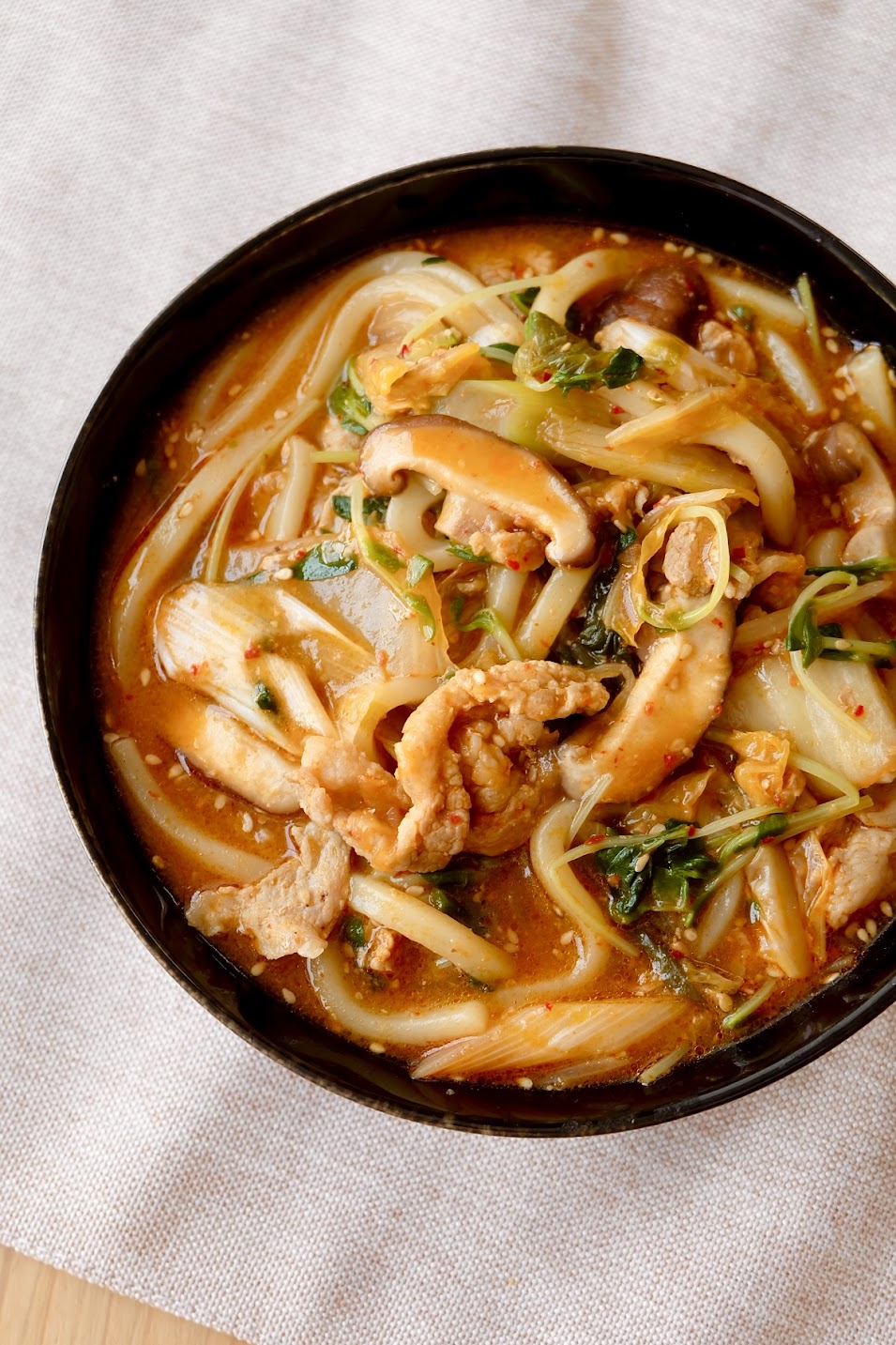 簡単に作れる絶品豚チゲうどんのレシピ。