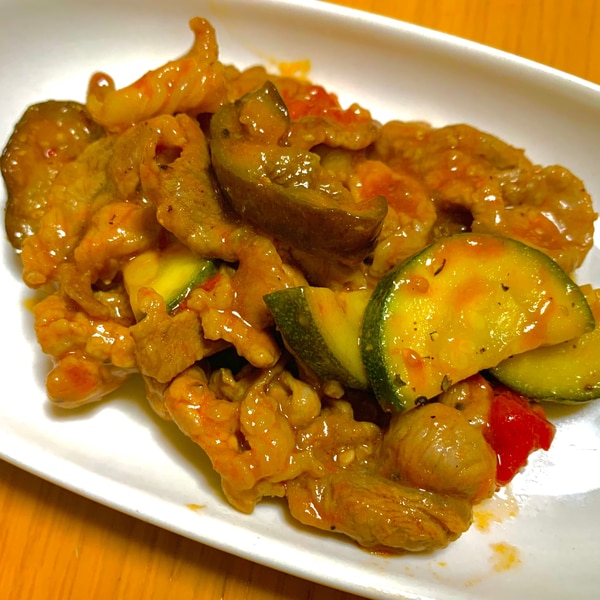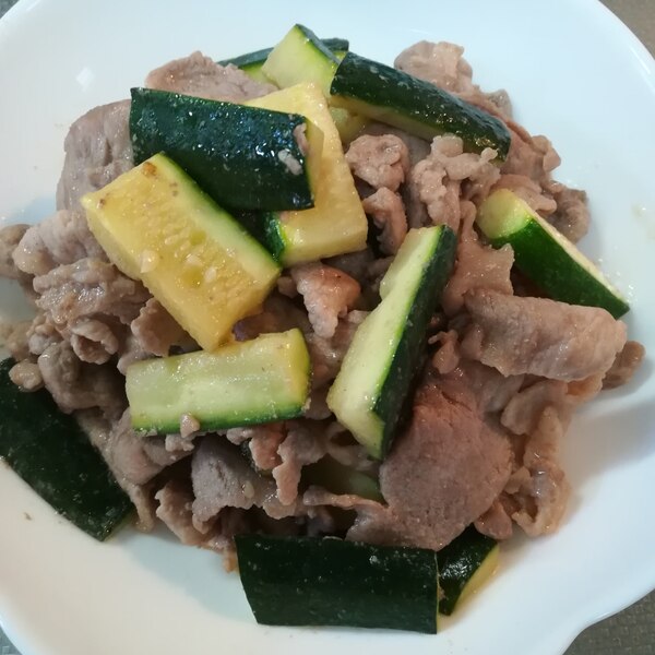 スピードおかず♪ ズッキーニと豚こま肉のケチャップ炒め。