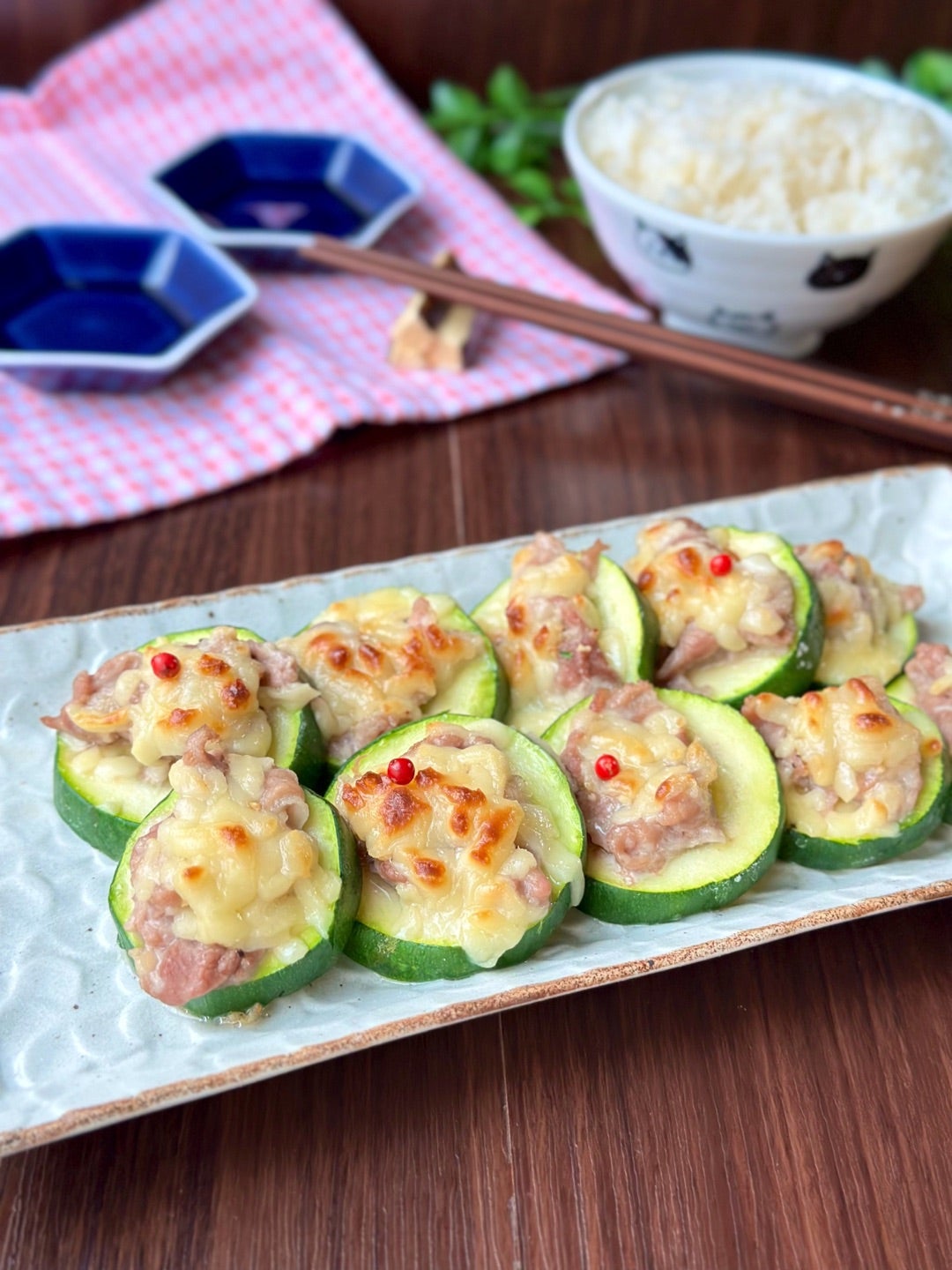 肉の旨味がジュワッ♪ 豚肉とズッキーニの重ねチーズ焼き。