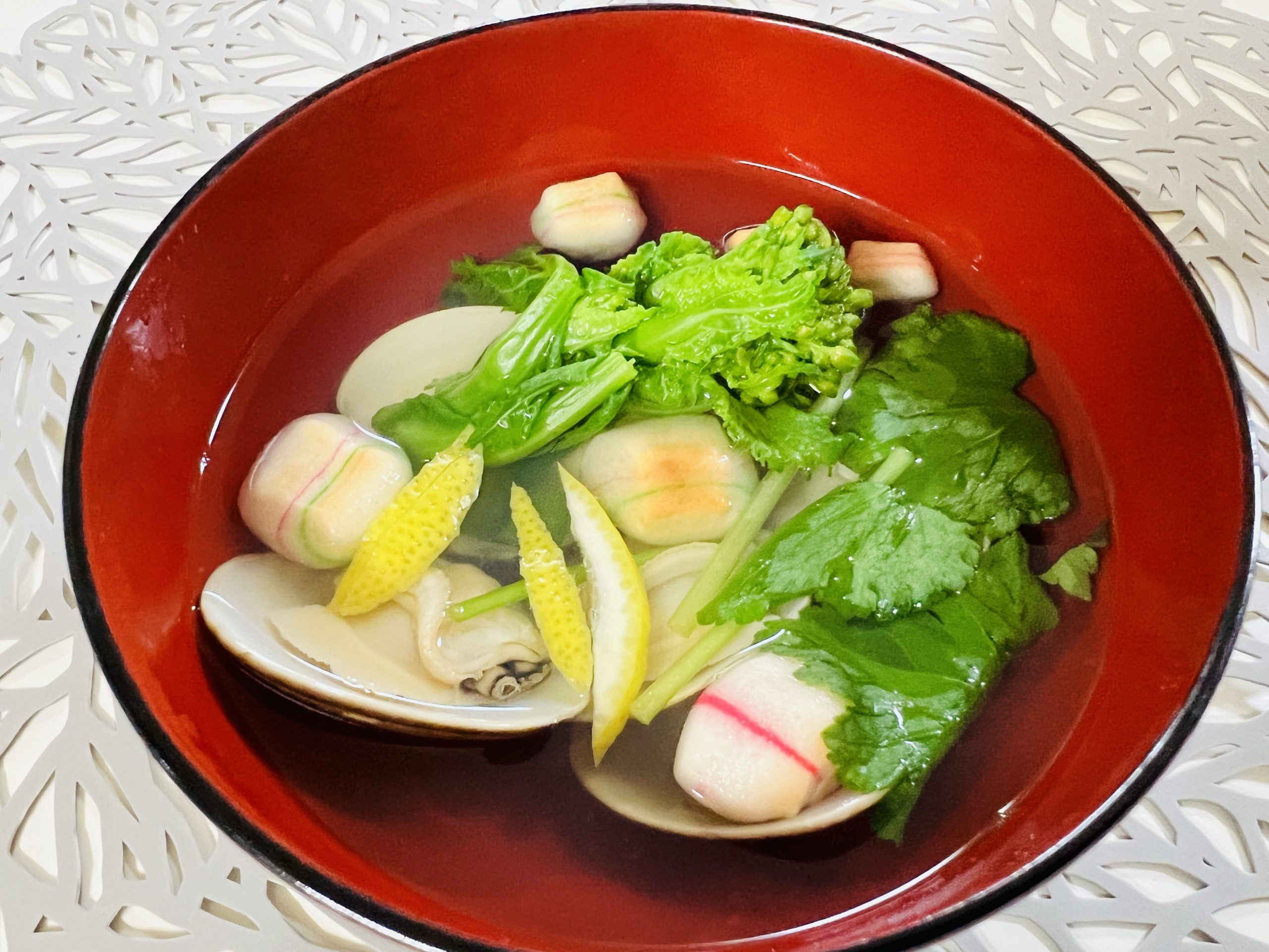 はまぐり 菜の花のお吸い物レシピ!菜花の汁物に白だしが簡単de人気の味。