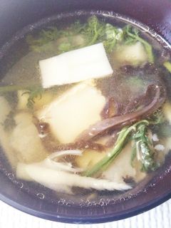 山菜みずの味噌汁♪もぎりみず汁♪。