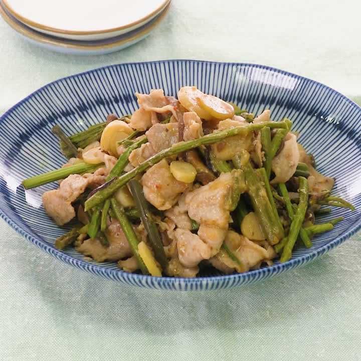 ピリっと辛い! 山菜のピリ辛肉味噌炒め。