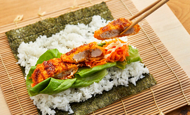 具材がぎゅっと詰まって食べ応え満点!冷凍ヒレかつのスティックおにぎり。