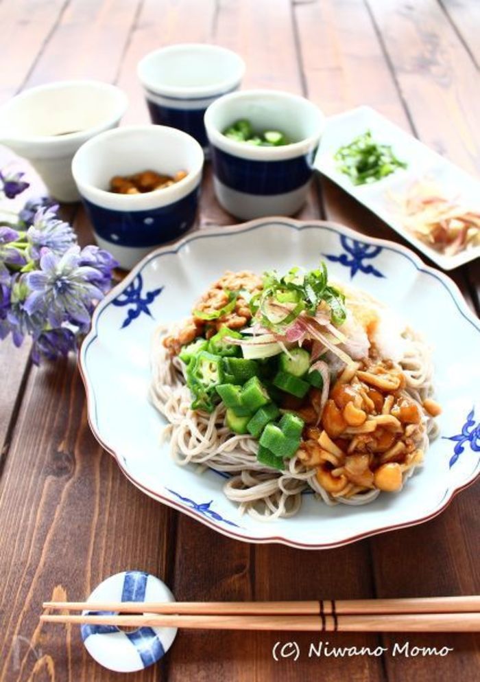 和食献立♪暖かくなる季節にぴったり!食べ応え十分ながら、梅しそでさっぱり食が進むぶっかけ蕎麦。