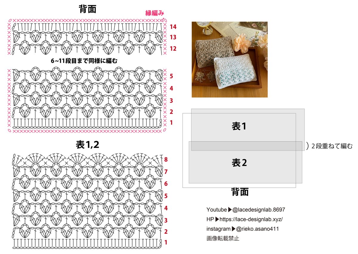 レース編みのポケットティッシュカバーの編み方 編み図 RiekoRiekoのレース編みレシピ。