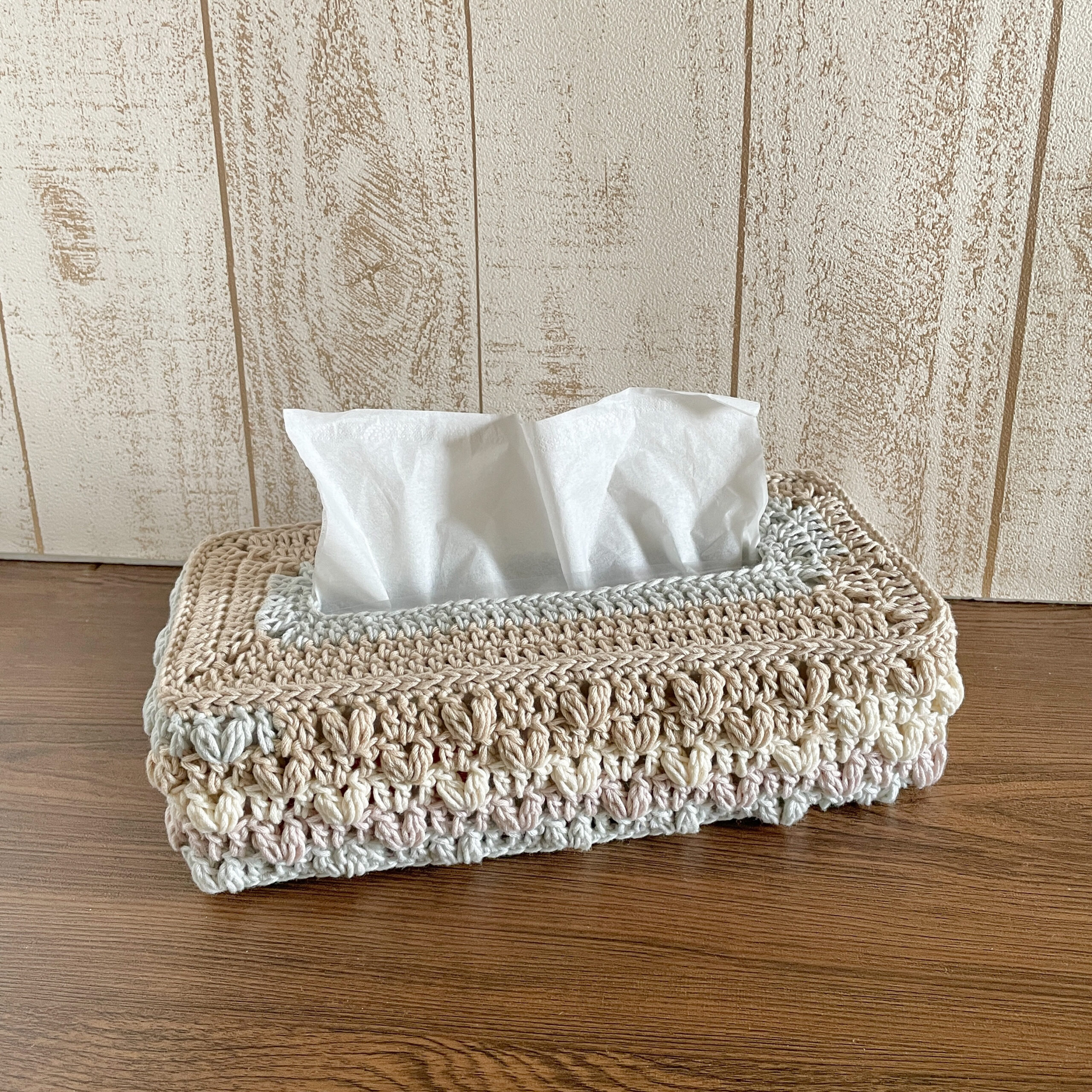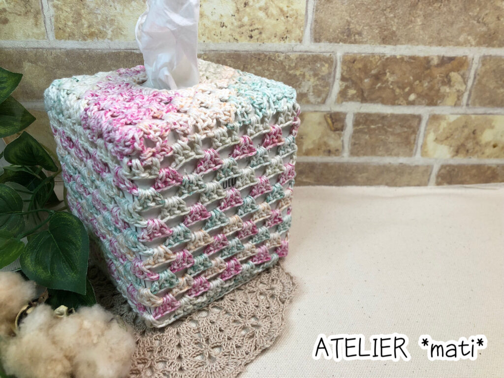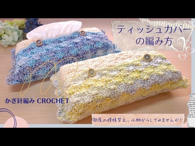 かぎ針編み Crochet 100均糸で編む可愛い模様編みのティッシュカバー♪ 模様替えに取り入れてみてね♪。