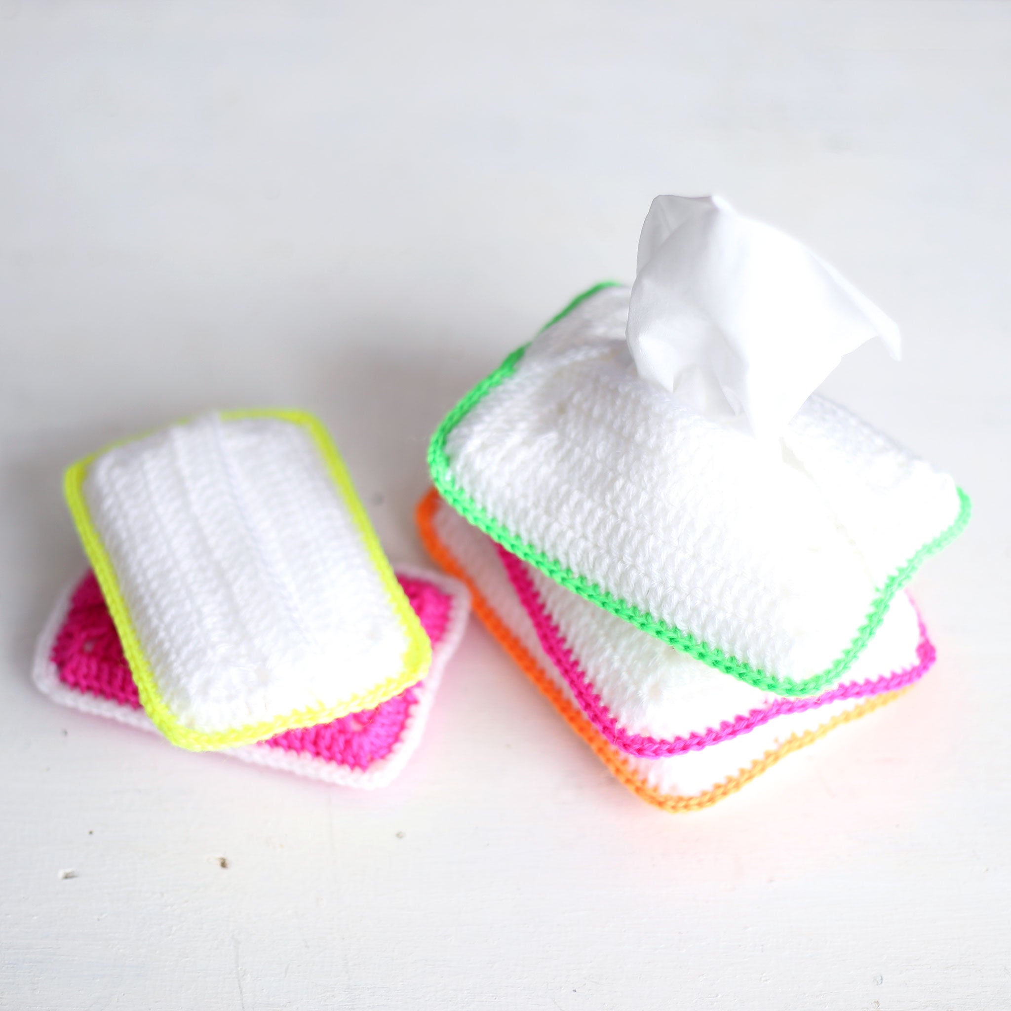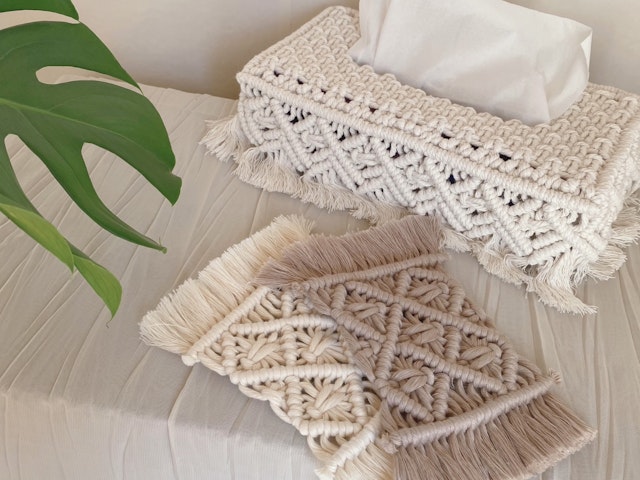 手作り編み物: ティッシュカバーの作り方とオーダーメイドオプション。