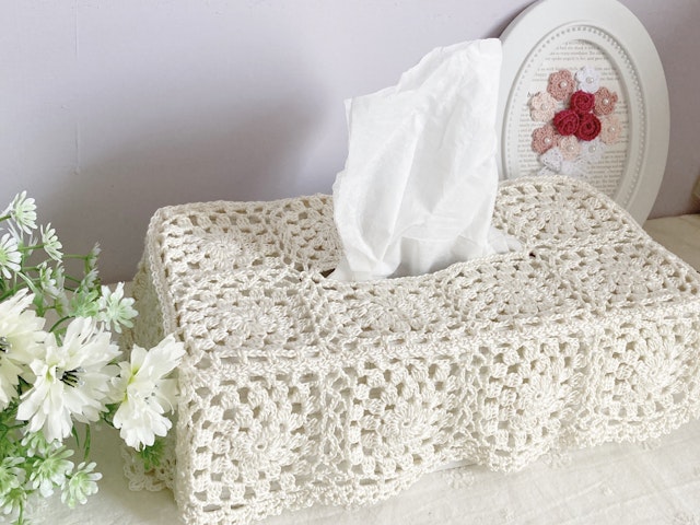 かぎ編み お花モチーフのティッシュケースを作ってみた。