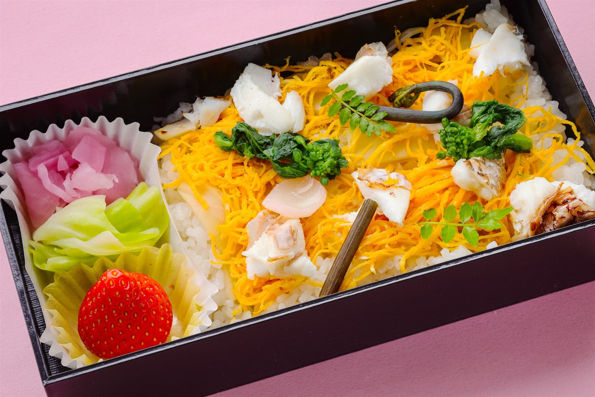 桃の節句に、春野菜と蟹のひなちらし寿司弁当。