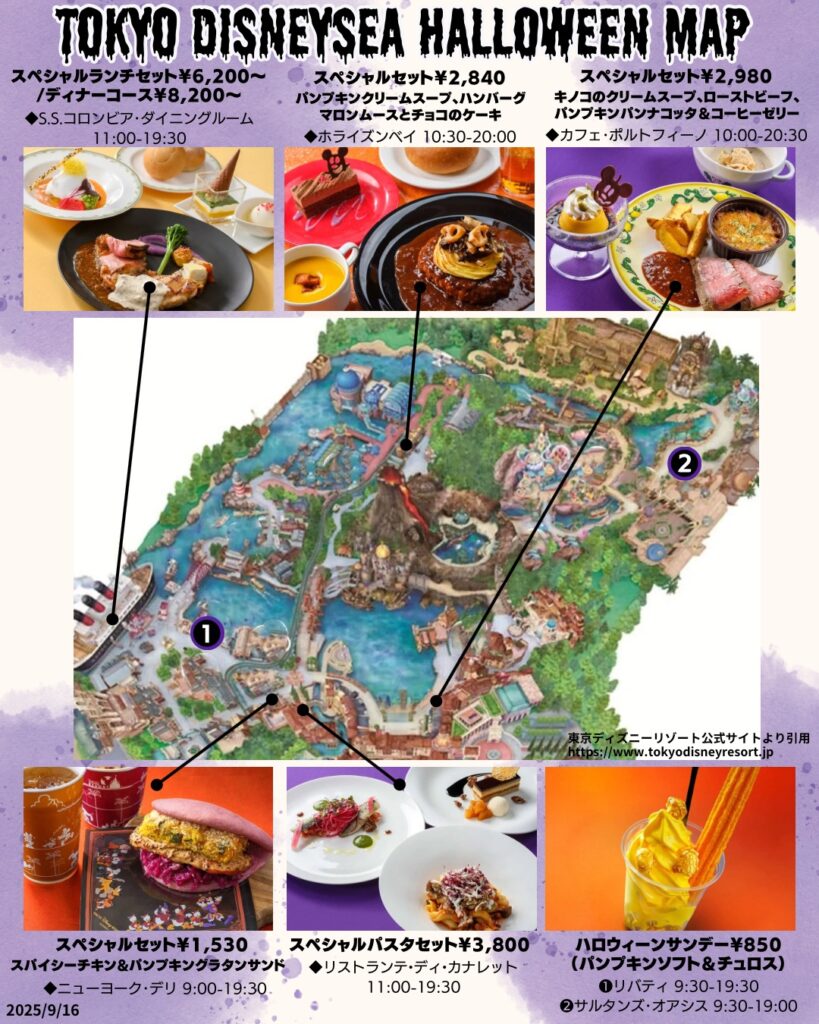 2025年9月 ディズニーハロウィーングルメ食べ歩きマップKYONMAP。