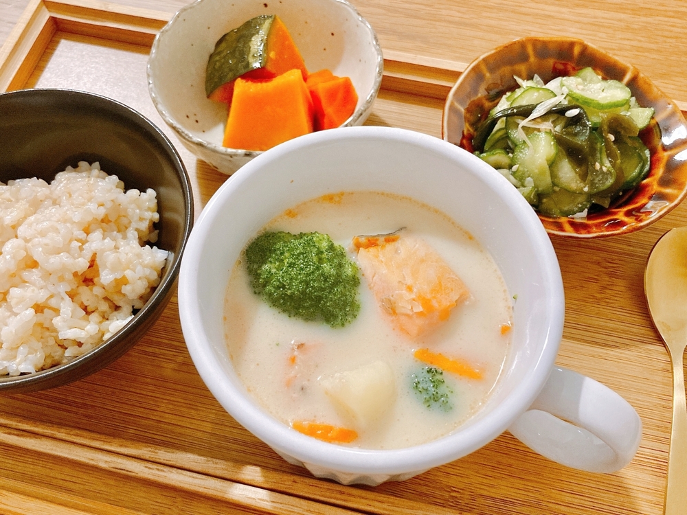 サーモンとブロッコリーのクリームシチュー」の献立 - プロのレシピならレタスクラブ。