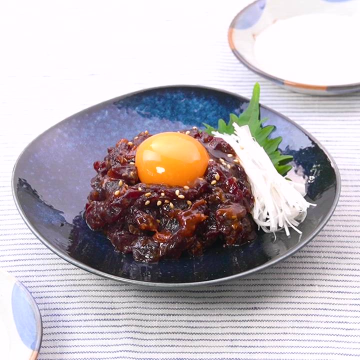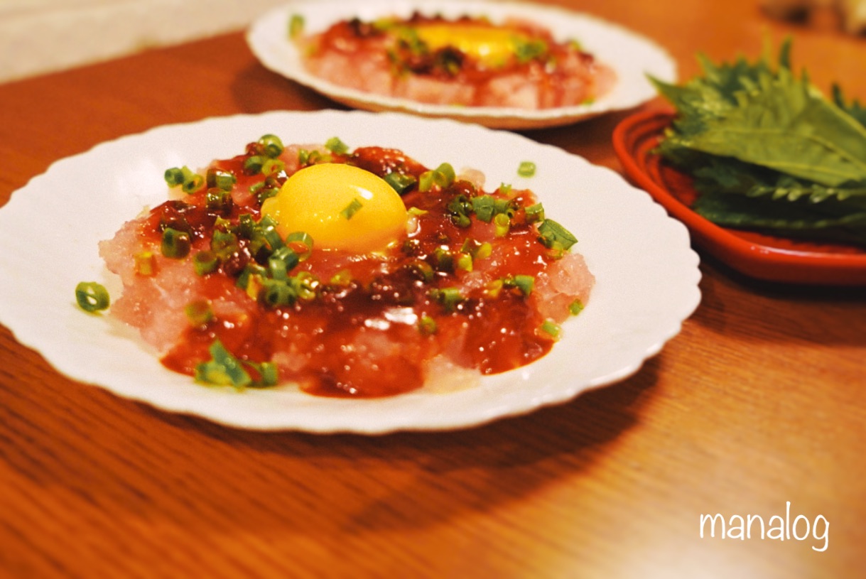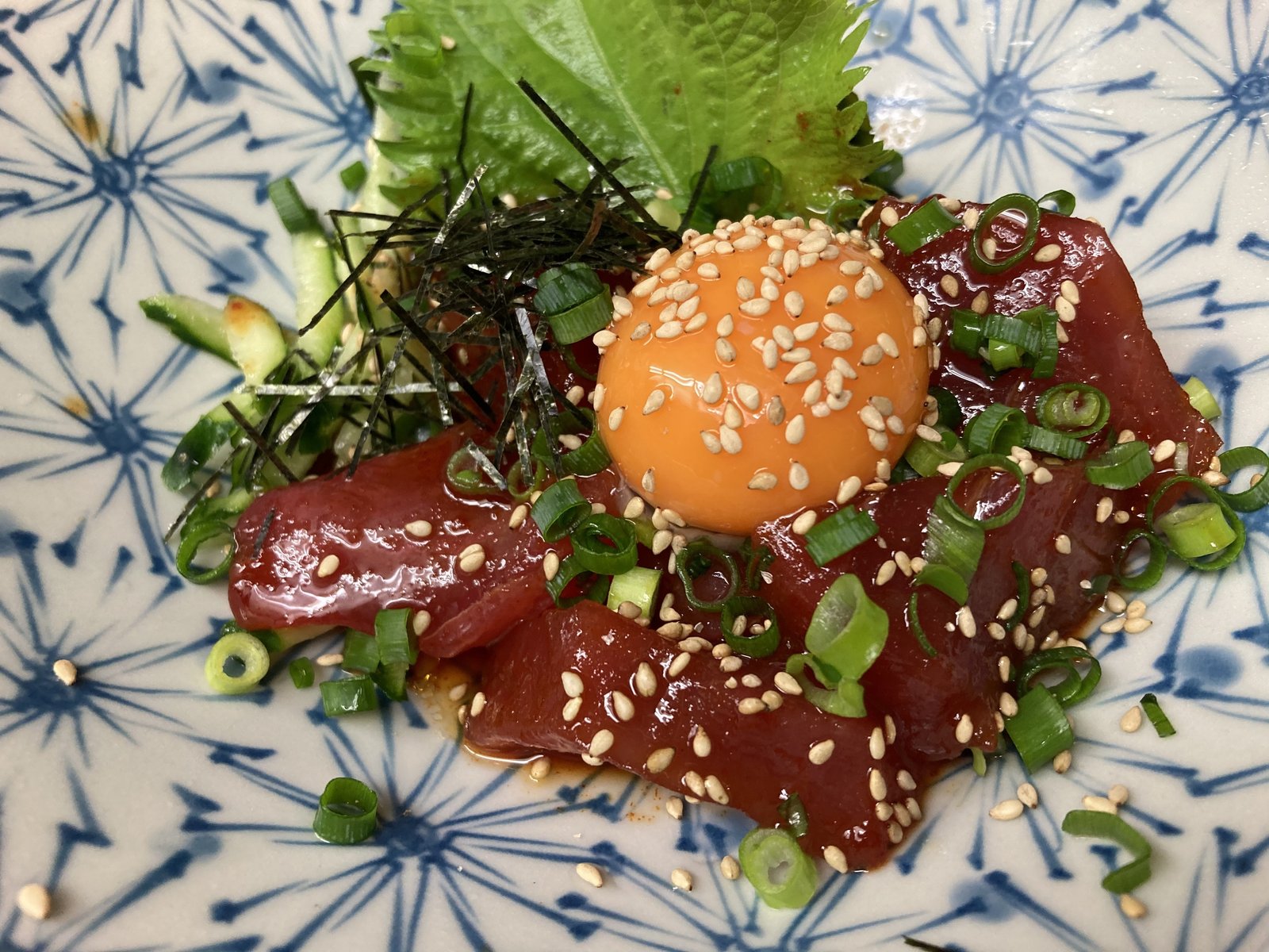 あと引くタレのうまさ!マグロユッケ 副菜。